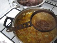 Vynikajúci recept na hustú mäsovo-zeleninovú polievku z ruskej, ukrajinskej, bulharskej... kuchyne. Hoci sa príprava zdá v troch hrncoch komplikovaná, je v skutočnosti jednoduchá. Stačí dodržať postupnosť krokov uvedených v recepte a bude skutočne mňam:)