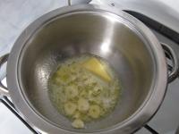 Cviklu ošúpeme a nakrájame na malé kocky. Ošúpeme cesnak a pokrájame na plátky. Rozpustíme maslo a opečieme na ňom cesnak.