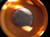 Kakaové cesto vložíme do stredu väčšej formy na pečenie koláčov. Formu podľa potreby vymastíme maslom a vysypeme múkou. V uvedenom recepte je použitá silikónová forma, tú nemusíme vymazať ani vysypať múkou.
