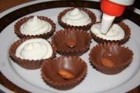 Nachystáme si papierové košíčky a vnútro opakom lyžičky polievame čokoládou, okraje musia byť trochu hrubšie, aby pri odstraňovaní papiera od čokolády nepopraskali. Necháme v chladničke stuhnúť.