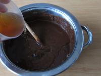 V horúcom vodnom kúpeli rozpustíme kondenzované mlieko, cukor a čokoládu s vysokým podielom kakaa.