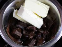 Čokoládu rozlámeme na kúsky a spolu s maslom roztopíme v horúcom kúpeli.