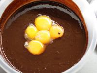 Žĺtka pridáme k čokoláde. Do zmesi pridáme múku. Nakoniec jemne zapracujeme vyšľahaný sneh.