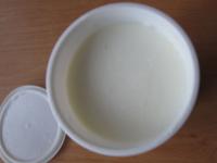 Ohriate mlieko prelejeme do čistej plastovej nádoby, ktorú sme predtým vypláchli dokonale vriacou vodou, je dobre uzatvárateľná a vhodná na uskladnenie potravín. Môžeme ho naliať aj do skleneného, alebo porcelánového pohára na ktorý máme vhodné, nie kovové viečko. Mlieko vychladíme na teplotu 48-50°C.
