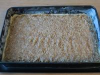 Rozvaľkáme druhú polovicu cesta a vložíme ju do vymasteného, múkou vysypaného plechu (25x38 cm).