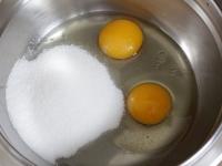 Počas šľahania pridáme roztopené maslo, jogurt, múku, prášok do pečiva a štipku soli.