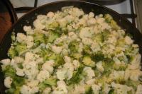 Takto pripravenú zmes pridáme k udusenej karfiolovo brokolicovej zmesi.
