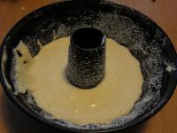 Formu na bábovku vymastíme maslom a vysypeme kokosom. Nalejeme cesto. Môžeme naliať všetko a bábovka bude mať len jednu farbu,