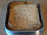 Cesto vylejeme do formy - malého pekáča (25x25 cm) vystlanej papierom na pečenie.