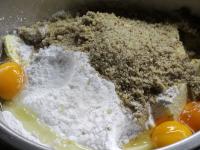 Maslo nakrájame na menšie kúsky a vložíme do misy. Hneď ako maslo zmäkne, do misy pridáme múku, cukor, štipku soli, mleté orechy, vanilkový cukor, kypriaci prášok, vaječné žĺtky, celé vajce. Rukami vymiesime cesto.