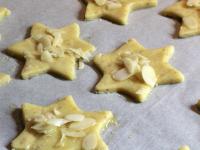 Z cesta vykrajujeme hviezdičky, ktoré prenesieme na plech vyložený papierom na pečenie. Každú hviezdičku potrieme rumom a posypeme mandľovými lupienkami. Pečieme 10 minút pri 150 ° C.