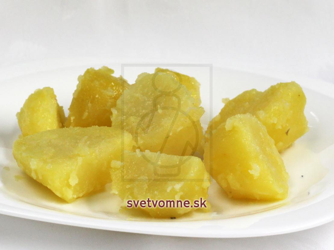 Zemiaky očistíme, nakrájame na menšie kocky a dáme variť do slanej vody. Uvaríme do mäkka cca 15-20 minút.