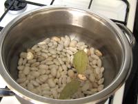 fazuľa veľká biela (maslová) 300 gramov • voda • voda 2 litre • soľ 1.5 čajovej lyžičky • bobkový list 2 kusy