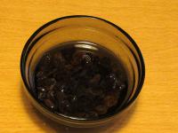 Vmiešame scedené hrozienka a vložíme do chladničky.