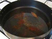 Vo väčšej panvici zohrejeme olej a opražíme v ňom koreniny.