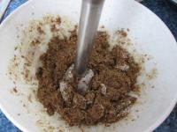 Najemno pomelieme vločky a dobre ich zamiešame pomocou ponorného mixéra do hmoty v miske.