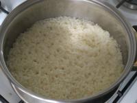 Ohrev stiahneme, ryžu zakryjeme pokrievkou a pomaly varíme 10 minút. Ohrev vypneme a necháme postáť.
