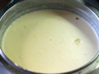 Zmes vyšlaháme v horúcom vodnom kúpeli. Vyberieme z kúpela a do krému pridáme želatínový stužovač.