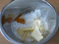 Do misy nasypeme múku, pridáme cukor, nasekané maslo, smotanu a vaječný žĺtok.
