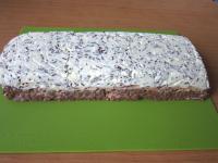 Formu (35x15cm) vystelieme alobalom a na dno rozotrieme tvarohový krém.