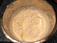 Do vyšľahaných žĺtkov prilejeme olej a vodu. Premiešame.