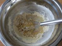 Prilejeme najprv 100 ml vody, rozmiešame. Podľa potreby doplníme asi 50 ml vody, aby vzniklo hladké cestíčko.