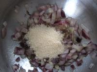 Cibuľu očistíme, pokrájame na drobno a osmažíme na oleji. Pridáme cukor, ktorý necháme skaramelizovať.