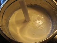 Pridáme mlieko, soľ a vajcia. Ponorným mixérom rozmixujeme.